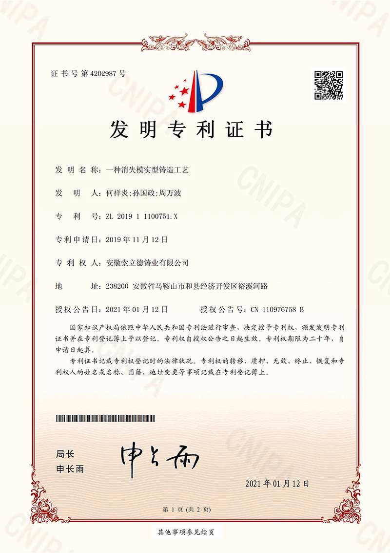 安徽索立德鑄業(yè)有限公司 版權(quán)所有 Copyright © 2018 All Right Reserve 免責(zé)聲明 皖I(lǐng)CP備15014019號 營業(yè)執(zhí)照